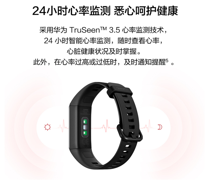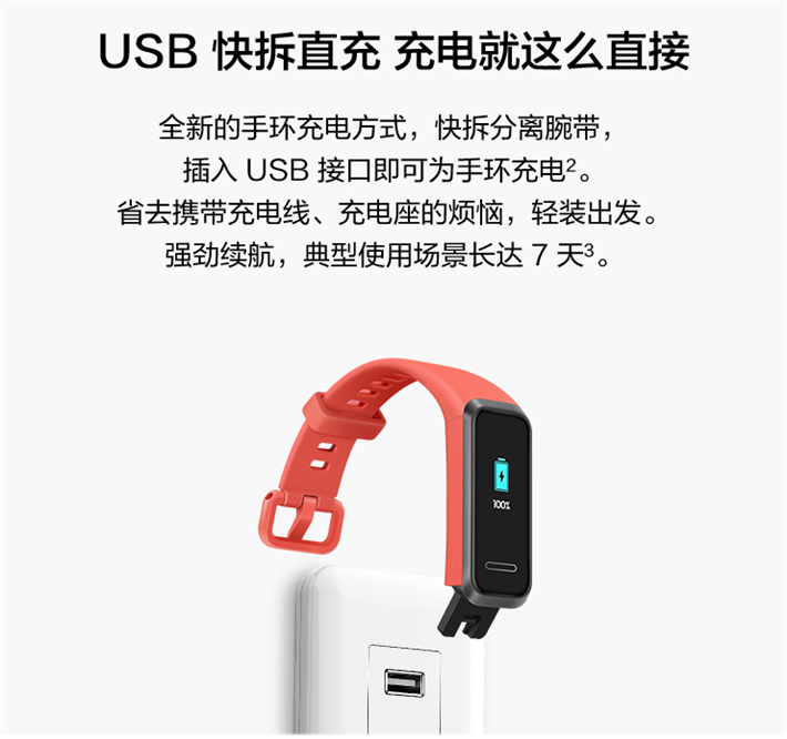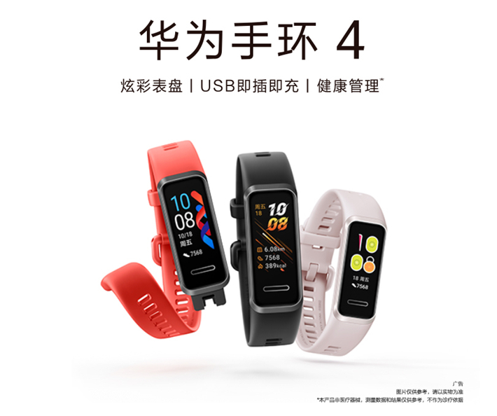 华为手环4 运动手环 智能手环(血氧饱和度检测+USB即插即充+心脏健康+睡眠监测+支付+安卓IOS通用)樱语粉